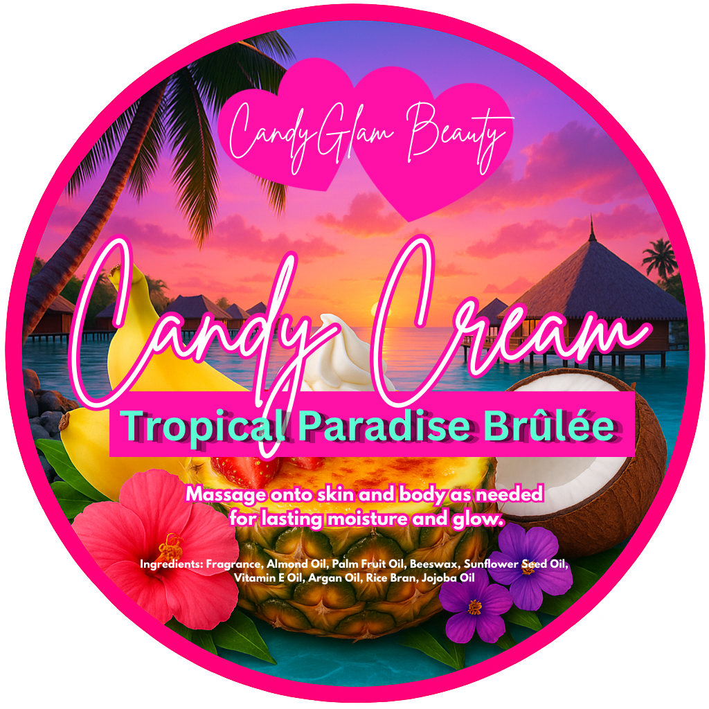 Whipped to perfection, this velvety body cream seals in hydration while infusing your skin with a lasting tropical fragrance. Made with Almond Oil, Palm Fruit Oil, and Beeswax, it melts into your skin like a sun-kissed dessert—rich with banana cream, coconut milk, and hints of golden brûlée.